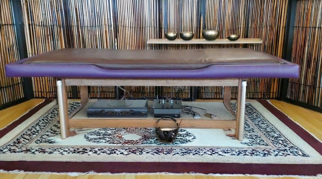 Sound Bed Therapy is a deeply restorative experience that combines the science of vibration with the art of relaxation to harmonize body, mind, and spirit. Using specialized transducers built into the treatment table, gentle sound frequencies and musical tones are transmitted directly through the body, creating a full-body resonance that releases muscular tension, calms the nervous system, and balances energy flow. As the soothing vibrations travel through the body, they help reset the brain and body to a natural state of coherence, promoting deep relaxation and emotional equilibrium.